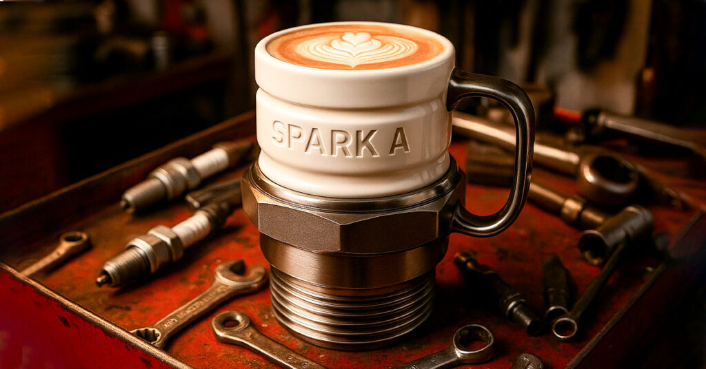 Every ridge, thread, and marking on this mug has been meticulously sculpted to replicate an authentic spark plug. The "SPARK A" engraving isn't just stamped on—it's carefully crafted into the design, giving you that industrial touch that makes it feel like something straight off the workbench. From the threading to the metallic base, these details aren't decoration—they're what make this mug instantly recognizable to anyone who knows their way around an engine.