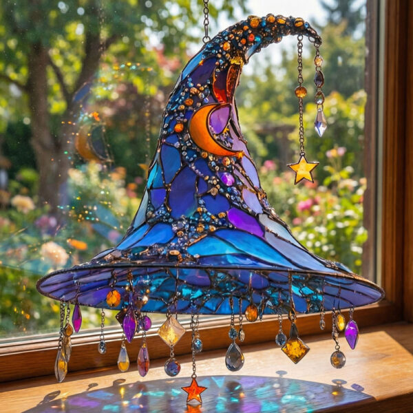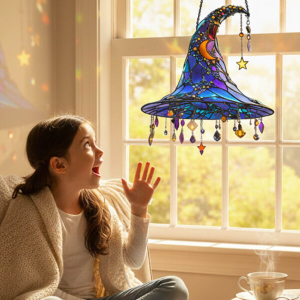 It’s made from durable acrylic, chosen so it can capture light beautifully without the fragility of real glass. It’s lightweight, sturdy, and resistant to cracking or fading, making it suitable for daily display in any window.