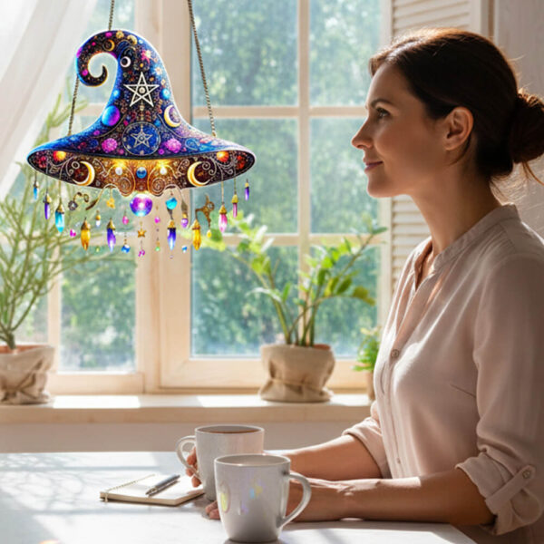 The SpellShine Sun Catcher is hand-painted, designed to mimic the glow and depth of stained glass. But more importantly, it carries symbolism—the witch and crescent moon represent curiosity, imagination, courage, and the spark many of us feel we’ve lost. It’s décor that means something.