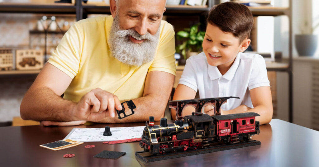 Something magical happens when three generations gather around this train puzzle. Grandfather's experienced hands guide small fingers to the right piece. Kids ask endless questions about how gears work while Grandpa shares stories about real steam engines. Screen time becomes workshop time, and quiet afternoons transform into animated conversations about mechanical engineering.