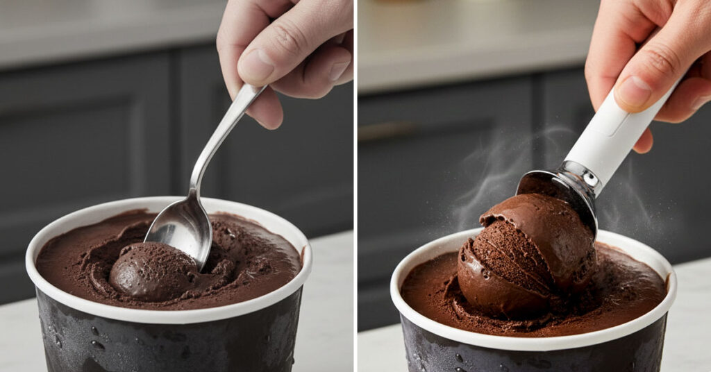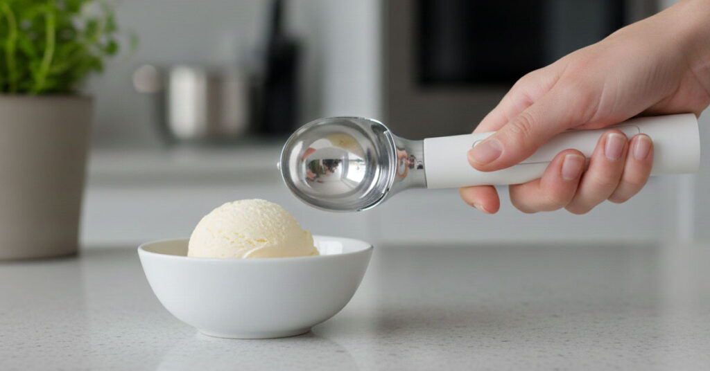 If you're dealing with ice cream that's been in a deep freezer at extreme temperatures, let the scoop preheat for a full 2 minutes before attempting to scoop. You can also let the ice cream container sit out for just 2-3 minutes to take the edge off. The scoop works best with standard home freezer temperatures (-10°F to 0°F). For commercial deep-freeze ice cream, a little patience goes a long way.