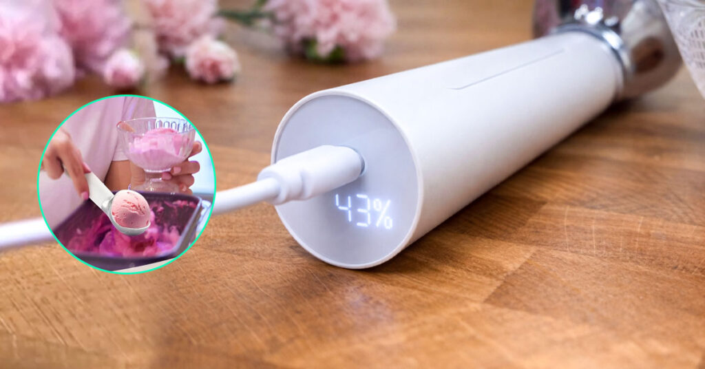 The built-in rechargeable battery means total freedom—no plugging in, no cords stretching across your counter, and no hunting for outlets. A single USB charge (about 1 hour) gives you dozens of scoops, so it's always ready when the ice cream craving hits. Just grab it from the drawer and go. Store it anywhere without worrying about cord management.