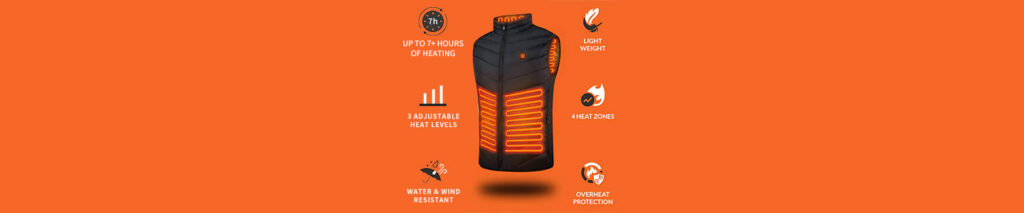 The vest features 4 built-in heating pads located in the front, back, and collar areas. Once connected to a USB power bank (not included), the pads warm up in as little as 3 seconds, distributing heat evenly across your core to keep you warm.