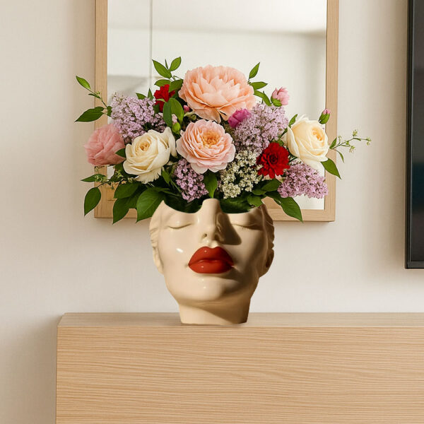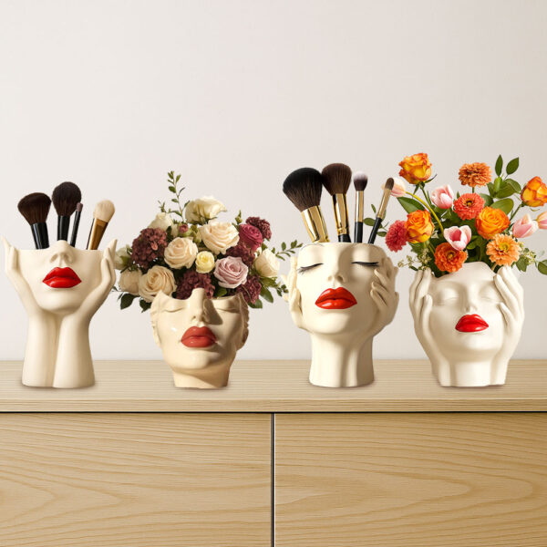 Timeless Muse is a sculptural vase inspired by modern European art. Designed in the abstract form of a serene woman, it doubles as both an artistic accent piece and a functional vessel. It can hold flowers, makeup brushes, incense, pens, or simply stand empty as a piece of decor.