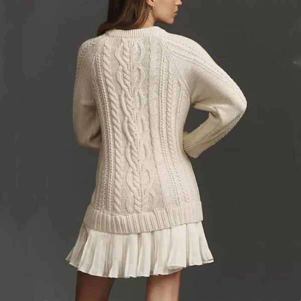 This sweater dress elevates this silhouette with refined knit textures and a softly flared pleated hem — striking the perfect balance between feminine and poised. It's polished enough for dinner plans yet relaxed enough for a coffee run, giving you that "I woke up looking like this" kind of confidence.