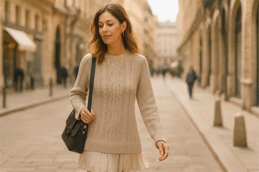 Pair it with ankle boots and a leather jacket for a city chic look, sneakers for casual weekends, or heels and a trench for an elevated ensemble. It transitions seamlessly from desk to date night, travel to holiday gatherings. One piece, endless combinations — making it a true lifesaver on busy days.