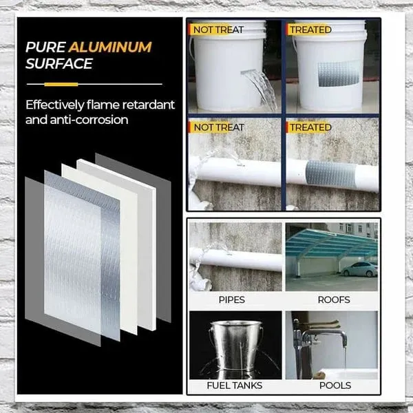 ToughSeal is an industrial-grade butyl + aluminum waterproof sealing tape designed to stop leaks fast. It bonds instantly to metal, plastic, wood, glass, concrete, and more—perfect for roofs, gutters, pipes, windows, RV seams, vents, and small tanks.