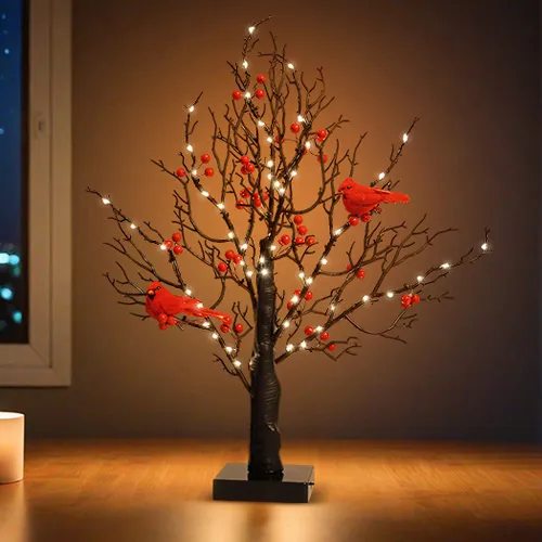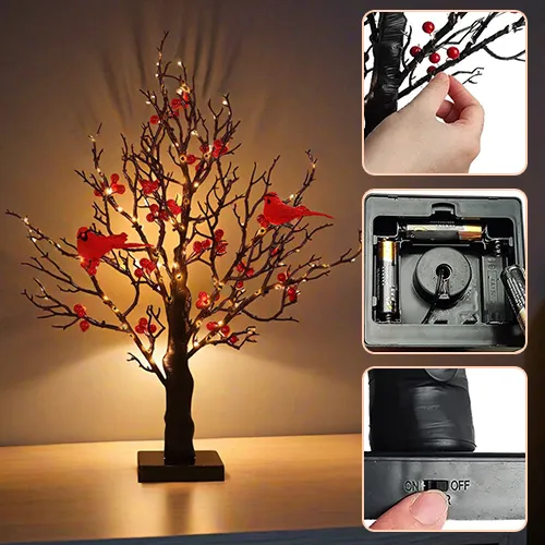 The Tree of Life is a beautifully crafted decorative lamp inspired by the Northern Cardinal and the serenity of nature. With glowing LED “berries,” lifelike cardinals, and flexible branches, it brings a warm, poetic glow to any space.