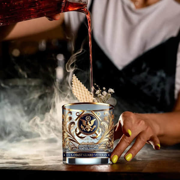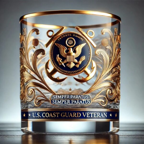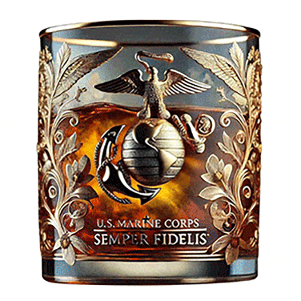 This glass is available in designs that uniquely honor the Army, Marine Corps, Navy, Air Force, and Coast Guard. The detailed engravings capture the spirit of service, ensuring that every veteran can proudly own a glass that represents their memory.