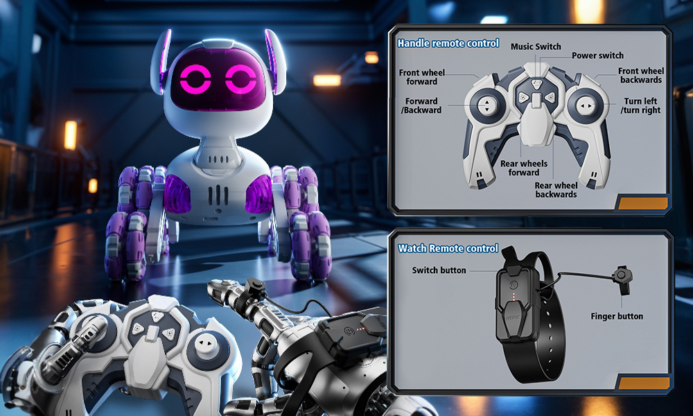 With 2.4G motion sensing, kids can steer RoboPup just by moving their wrist — tilt left or right to make it turn, press the finger button to go forward, back, or sideways, and even do cool wheel flips! It feels just like magic.