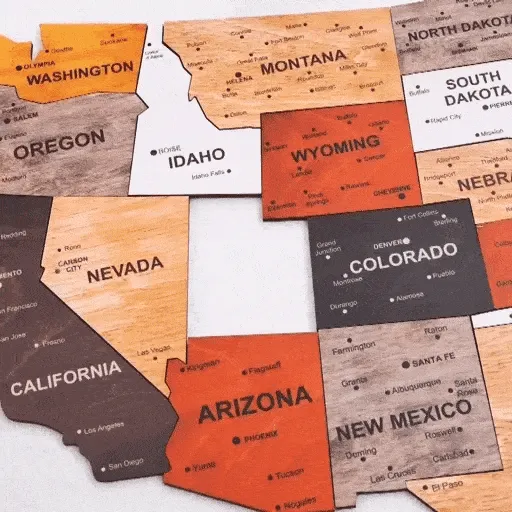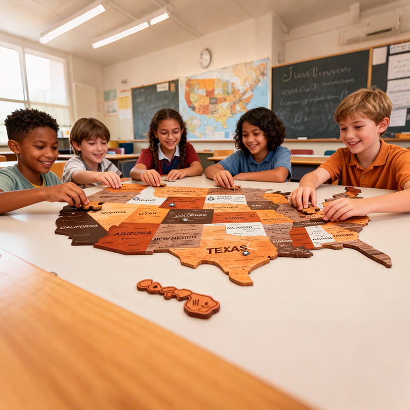 🧩 United States Wooden Puzzle Map (includes Alaska & Hawaii)