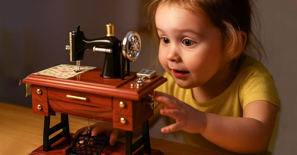 Three generations. One melody. A miniature sewing machine that doesn't sew anything but somehow stitches together past, present, and future.